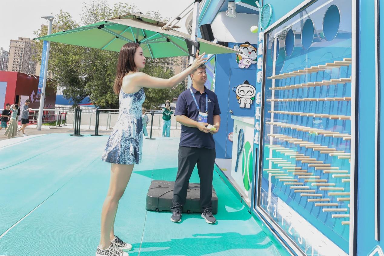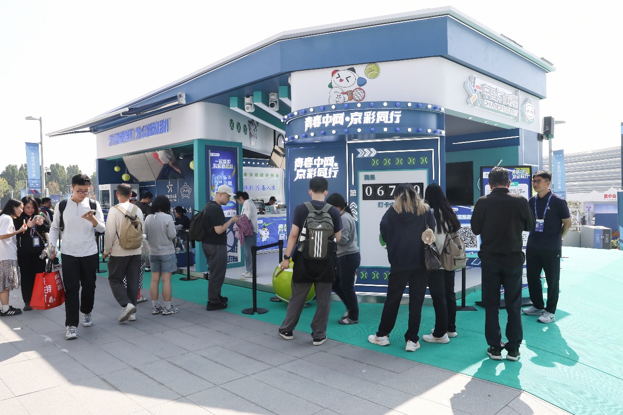 自 2003 年首次亮相以来,中国网球公开赛持续升级,已成为国庆黄金档的体育盛事。2025年中国网球公开赛更是成为亚洲首个横跨三周、规模最大、级别最高的综合网球赛事,在9月14日至10月5日赛事期间先后开展ITF青少年比赛、WTA1000女子赛事以及ATP500男子赛事。自9月14日ITF青少年比赛启动开始,北京体彩就入驻钻石球场外的展商专区,以“青春中网 京彩同行”为主题,设计了充满网球元素和青春活力的展厅,打造了时尚且具吸引力的沉浸式体验空间。