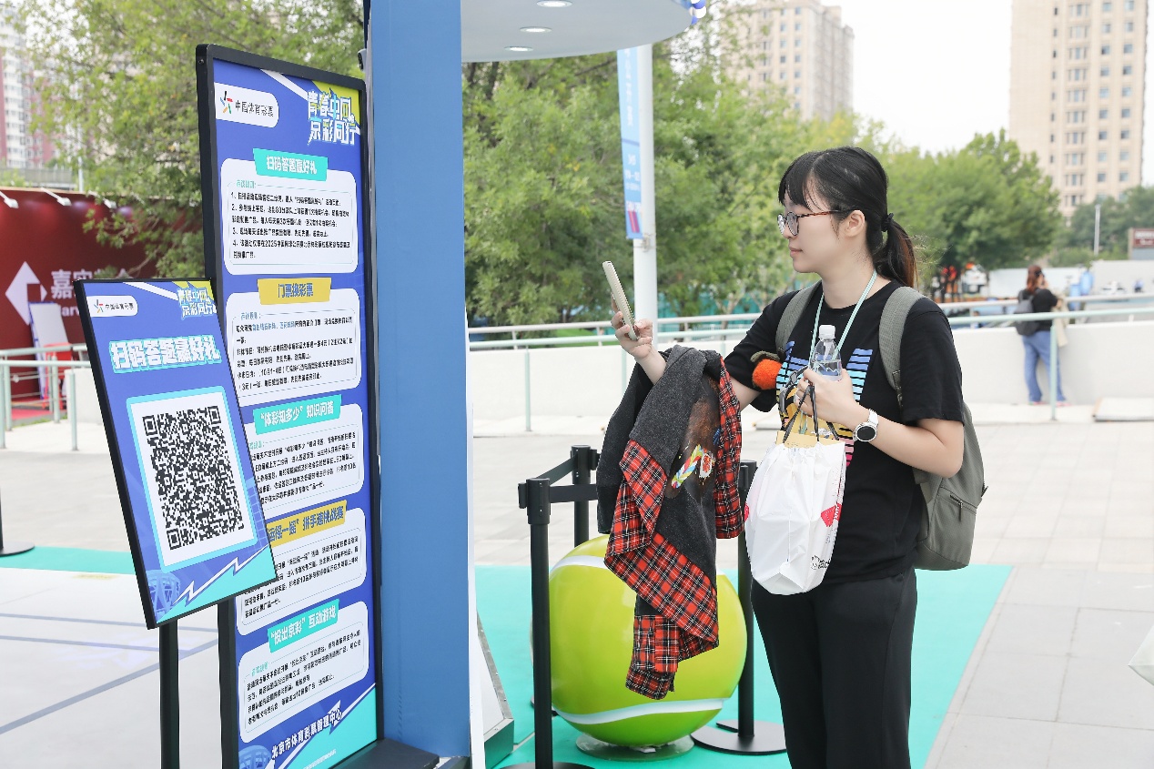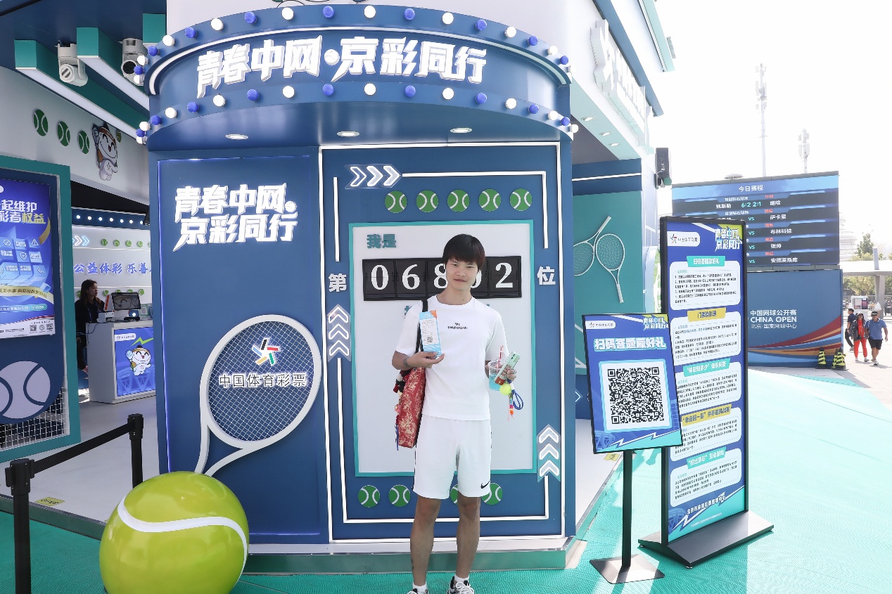 连日来,好玩有趣的北京体彩展厅已经为中网观众带来欢乐和惊喜。无数观众在体彩网红打卡墙前拍照留念,留下观赛的记忆;走进展厅观摩体育彩票公益责任建设成果展,深入了解体育彩票公益金多年来对体育事业和社会公益的贡献,再结合观展内容扫码参与 “线上体彩知识竞答”,随机获得精美的体彩定制推广品,收获到北京体彩送出的秋日惊喜;持钻石球场和莲花球场正价门票在展厅换取指定的超级大乐透彩票;参与VR网球体验和“投出京彩”互动游戏,在挥拍和投掷动作中,体验网球运动的魅力……